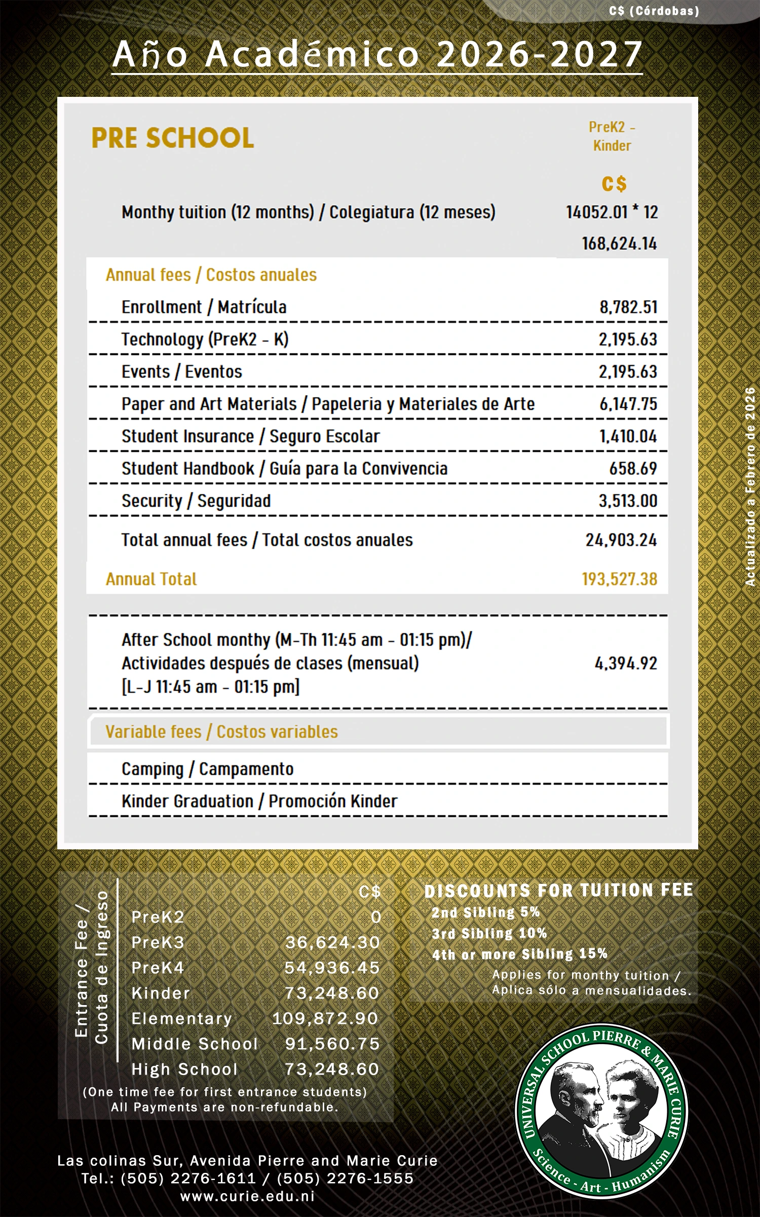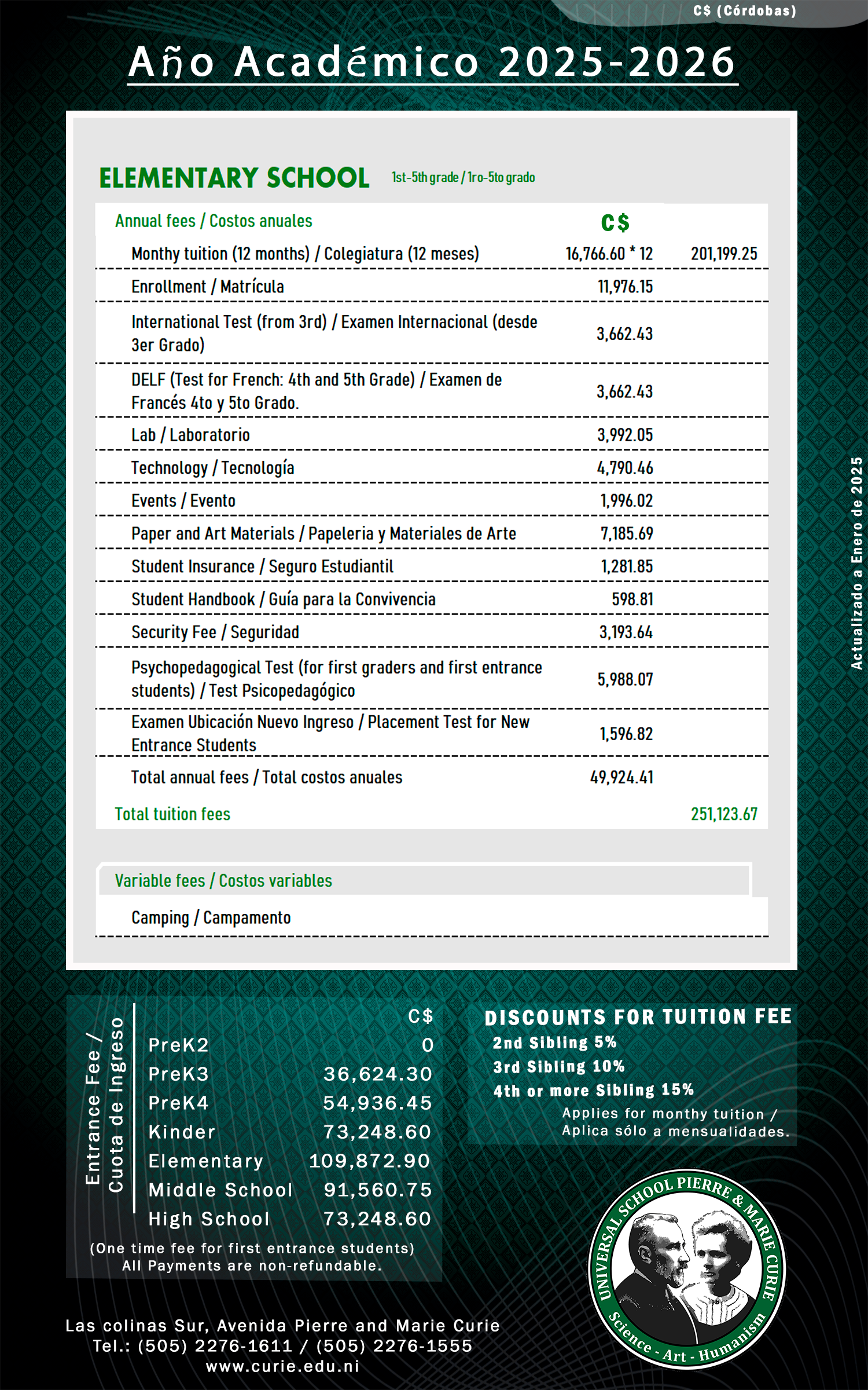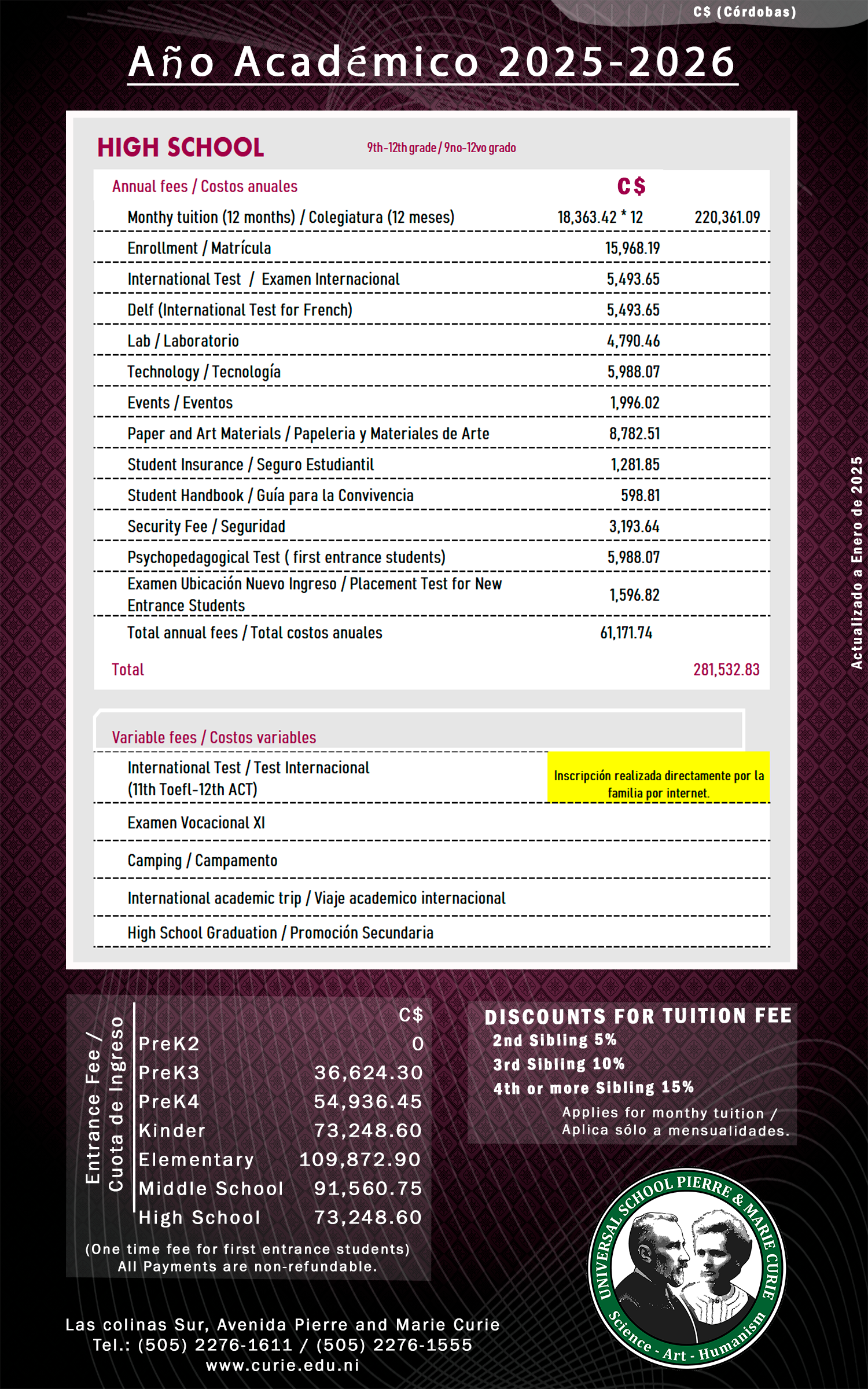 Aranceles de cada nivel educativo.