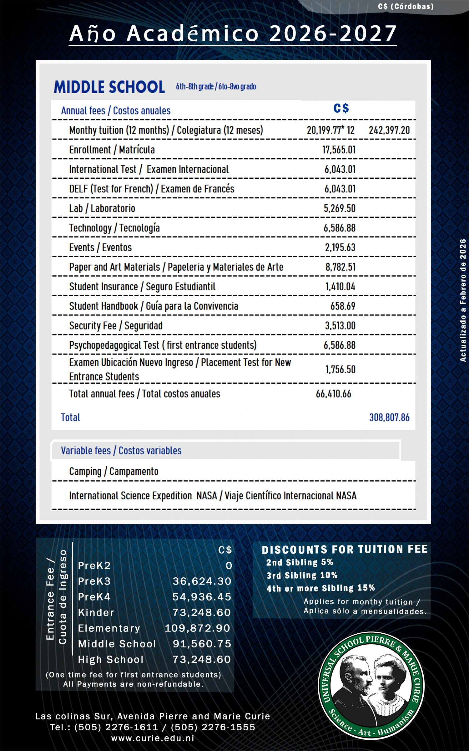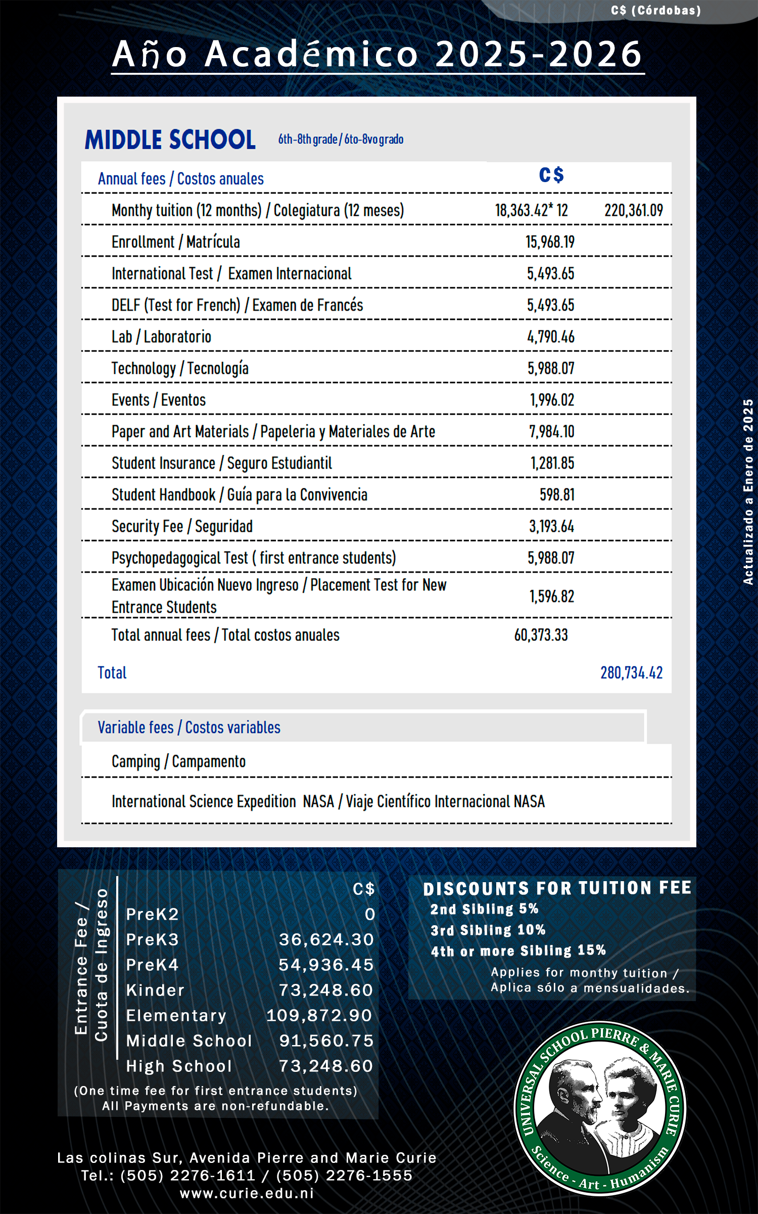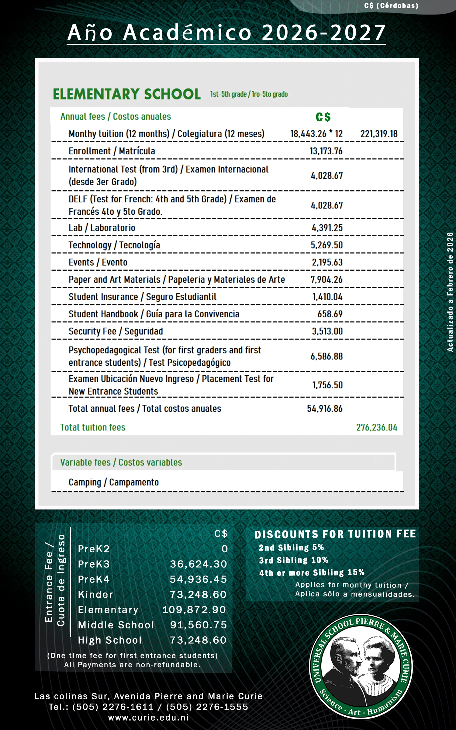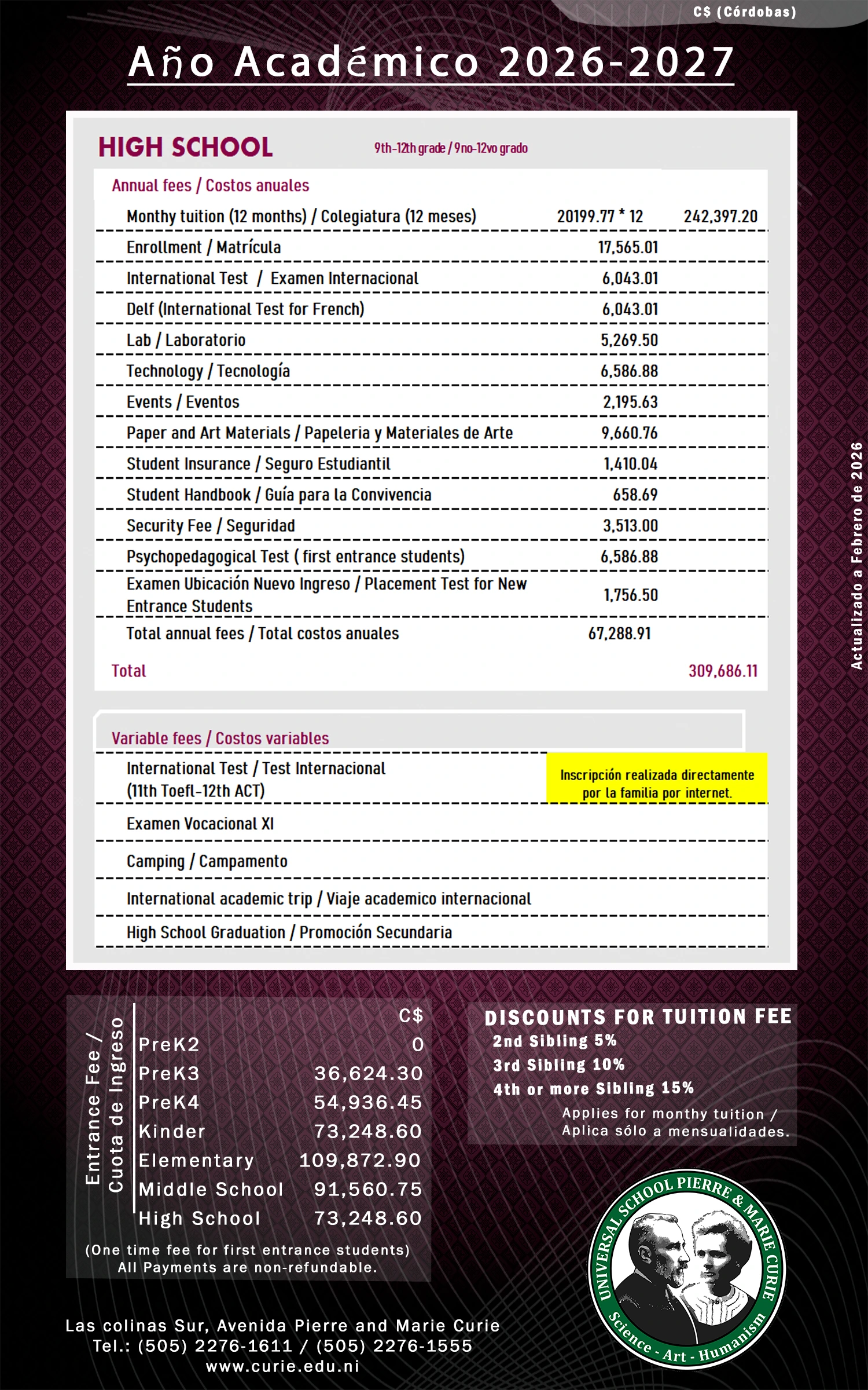 Aranceles de cada nivel educativo.